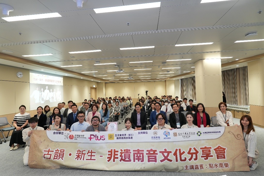 2026年3月30日,由香港藝術節「加料節目」與立法會商界(第三)嚴剛議員辦事處合辦,大灣區青年科創基金會(“青創會”)、香港中國企業協會青年委員會、招商青聯,以及1872青年贏支持舉辦的「古韻·新生—非遺南音文化分享會」在香港立法會綜合大樓圓滿舉行。