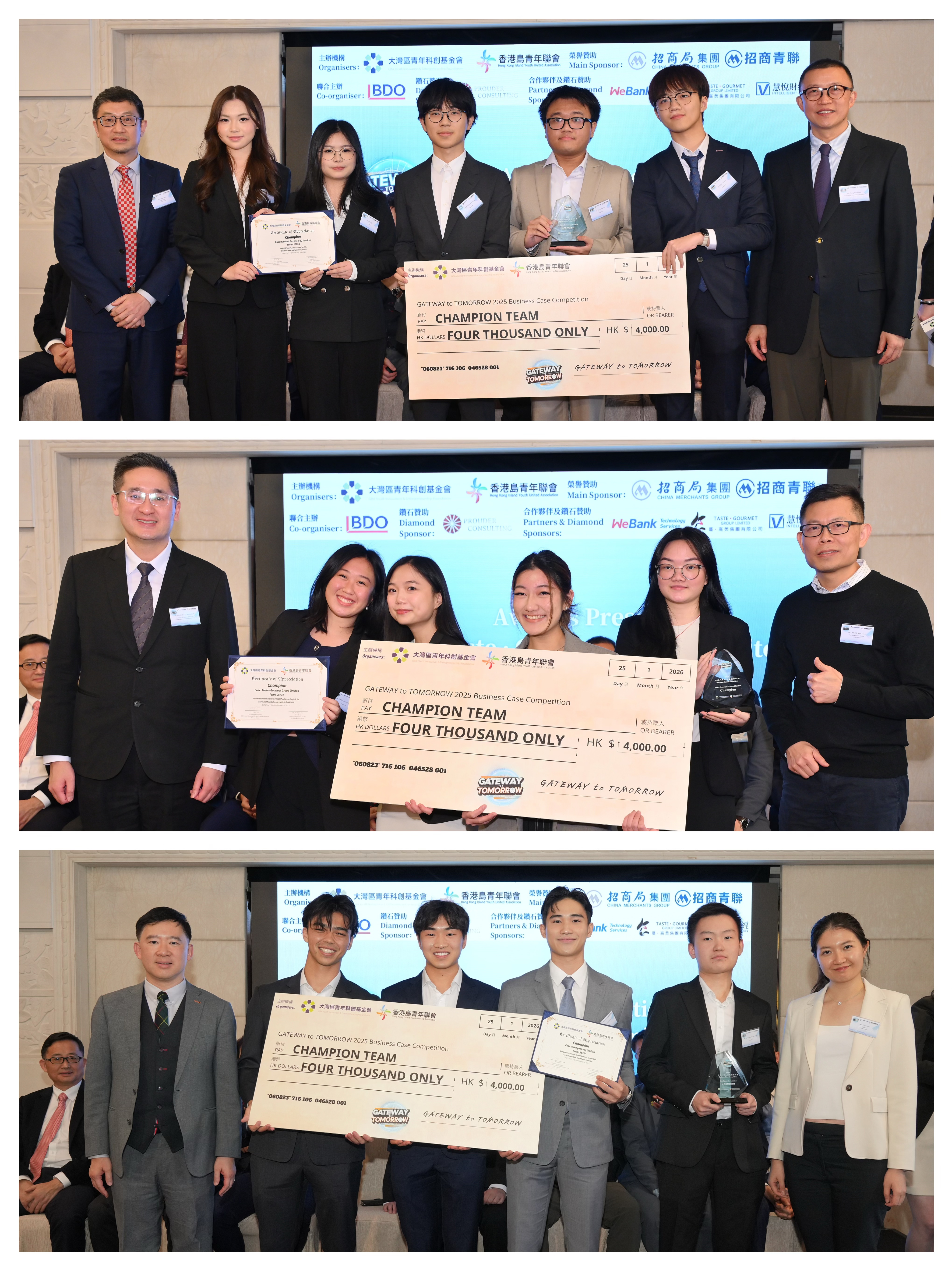 三組冠軍隊伍成員對本次活動的整體安排及導師團隊的專業指導表示讚揚,並認為導師豐富的行業經驗與隊伍之間的良好協作,為取得理想成果奠定了重要基礎。他們亦感謝主辦方精心策劃此次活動,為青年學子提供高水平的學習與實踐平台,讓他們在商業分析、創新思維及表達能力等方面得到顯著提升。是次比賽緊貼未來科技與商業發展趨勢,給香港青年學子提供寶貴的學習與實踐機會,為培育具前瞻視野與實踐能力的青年人才創造有利條件。